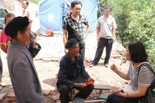 图为彝良县审计局审计人员在灾区现场帮助有关部门建立救灾款物接收、发放台账