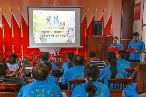 宜良县审计局党组主要负责人到对口帮扶的九乡回族彝族乡陇城村党总支,为128名党员讲授《学党章党规做合格党员 扶贫攻坚建设社会主义新农村》专题党课,并为每位党员配发《中国共产党章程》和党徽。