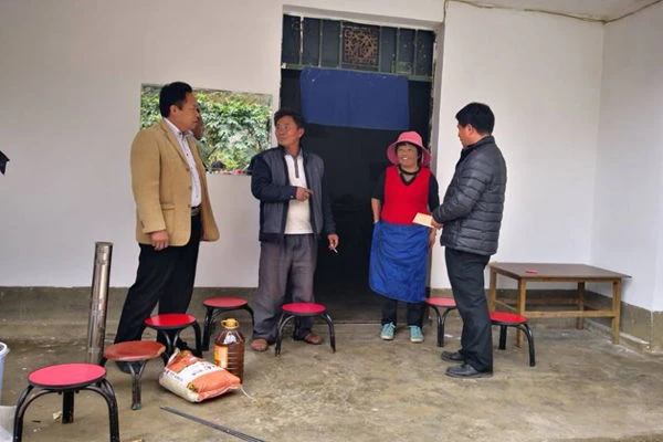 屏边县审计局干部职工前往挂钩点白河镇放阳村走访慰问当地的贫困村民,为贫困家庭送去了新年祝福和过年物资,鼓励他们要“自强诚信感恩”,增加摆脱贫困的信心。