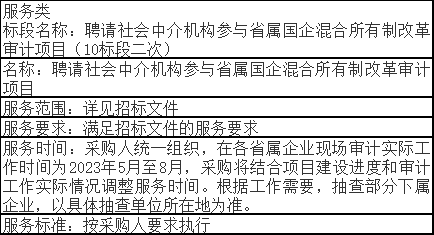 标段名称:聘请社会中介机构参与省属国企混合所有制改革审计项目(10标段二次)