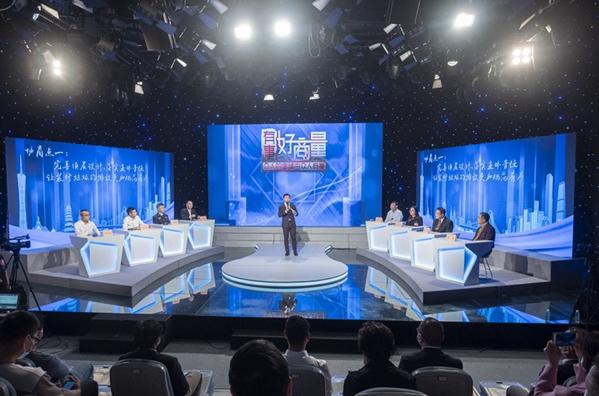 政协委员、政府部门代表、物业代表等在广州市政协“有事好商量”民生实事协商平台,围绕加强装修垃圾管理议题展开协商(2021年11月19日摄)。新华社发(庄小龙 摄)