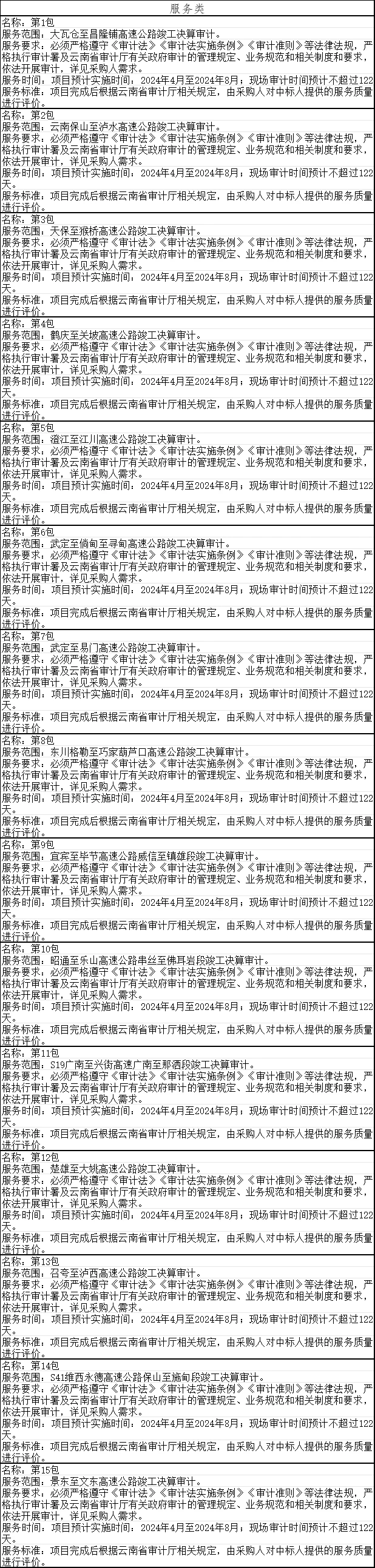 二、项目名称:云南省审计厅2024年投资审计项目采购社会中介机构招标