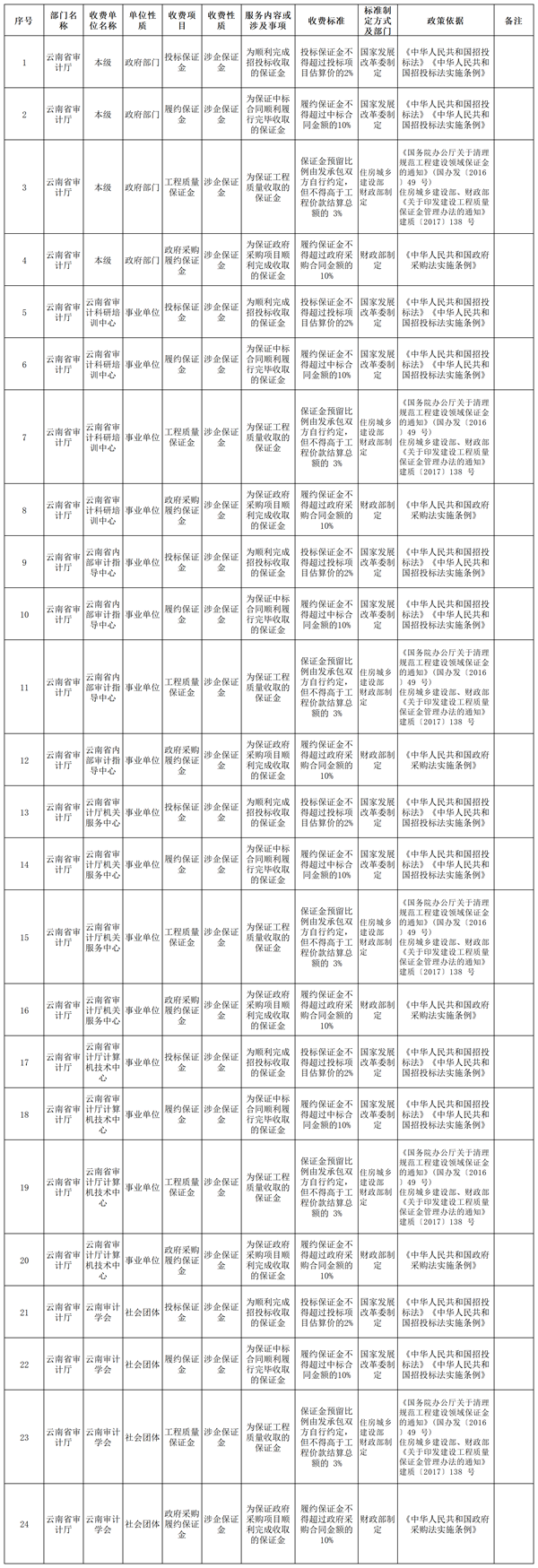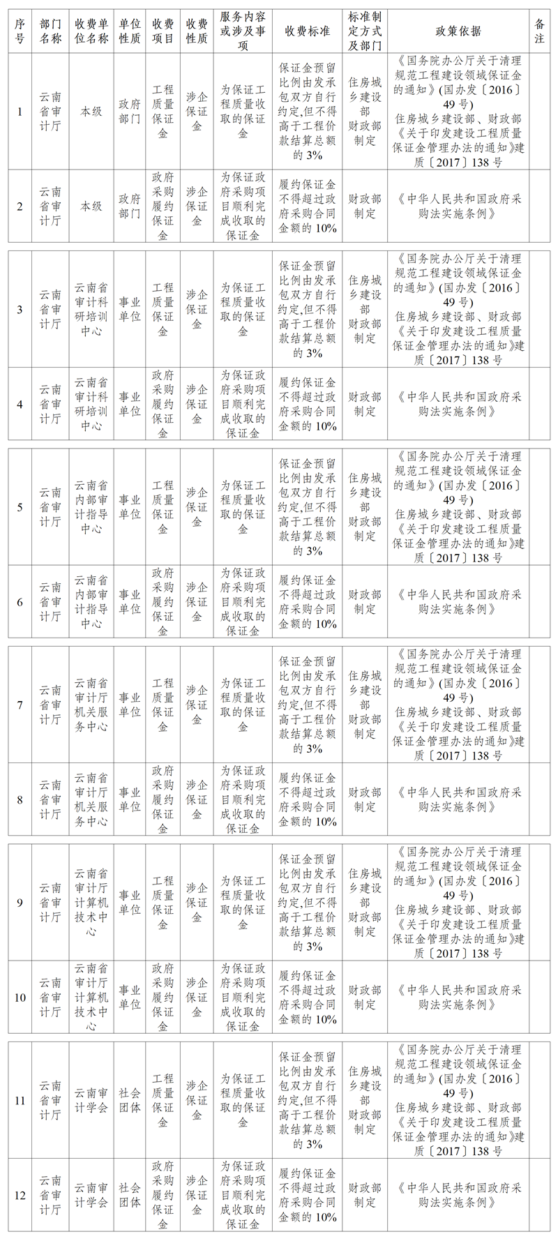 云南省审计厅及下属单位综合性涉企收费目录清单