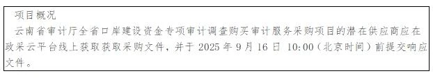 项目名称:云南省审计厅全省口岸建设资金专项审计调查购买审计服务