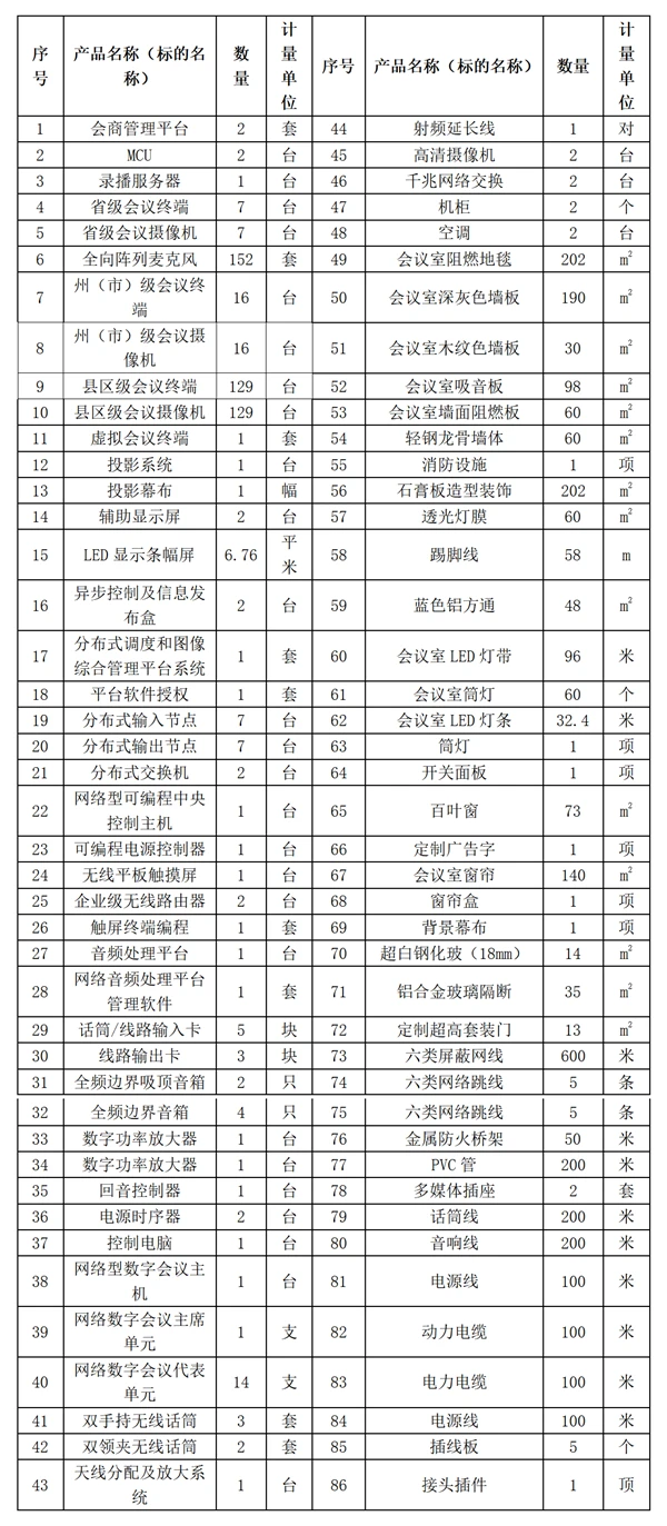 6.采购需求:本项目不分包,为云南省审计机关视频会商系统升级改造项目,拟采购全省视频会商系统和省厅会议室会商系统附属设备,完成视频会商平台、省厅7个会议室和16个州(市)、129个县(市、区)审计机关视频会商接入设备升级改造及项目相关服务。