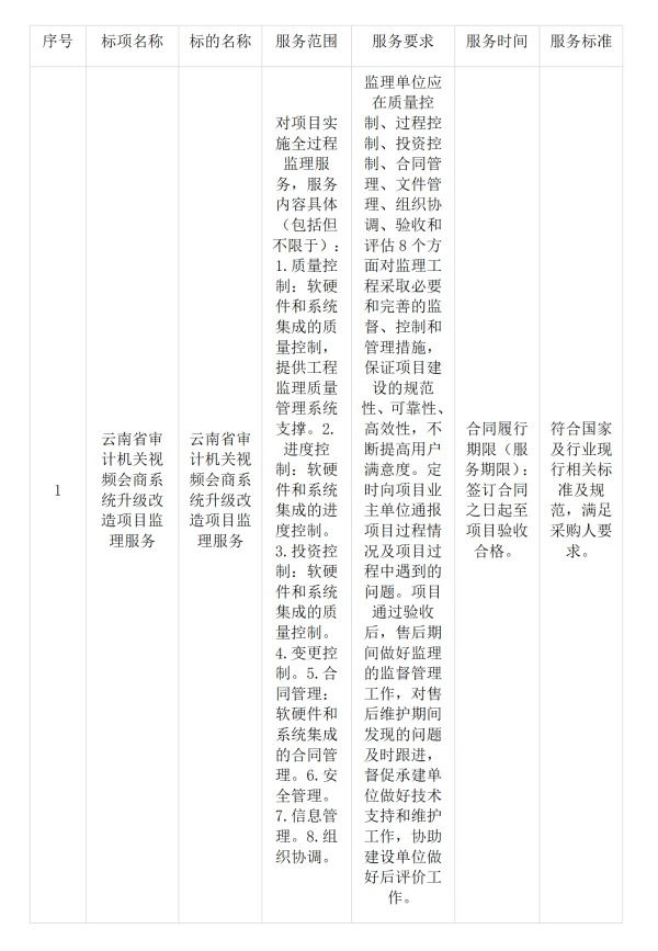 二、项目名称:云南省审计机关视频会商系统升级改造项目监理服务